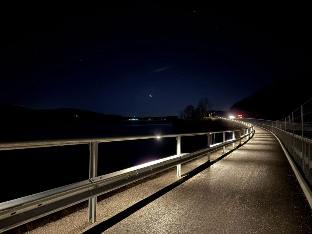I det här projektet har TRS Solutions AB utvecklat en alternativ lösning till traditionella belysningsstolpar. Istället har belysningen integrerats direkt i räcket längs cykelvägen. Vi tog fram en diskret men effektiv ljussättning som: